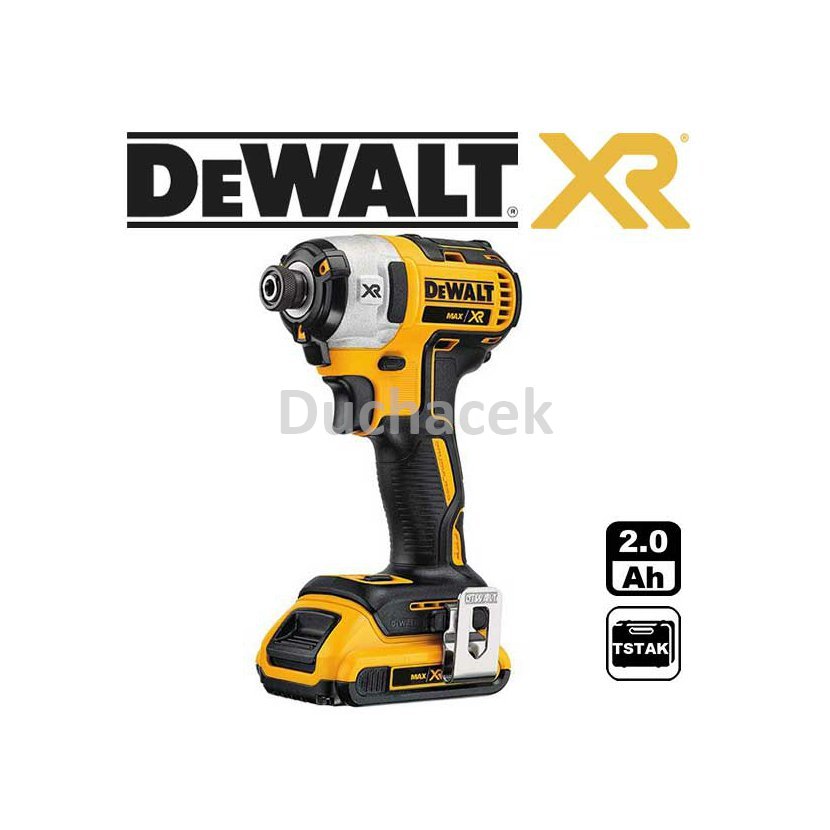 Aku rázový utahovák (bezuhlíkový) DeWalt 1/4" 18V/2,0Ah Li-Ion XR Standardně dodáváno: nabíječka, 2x baterie a kufr.