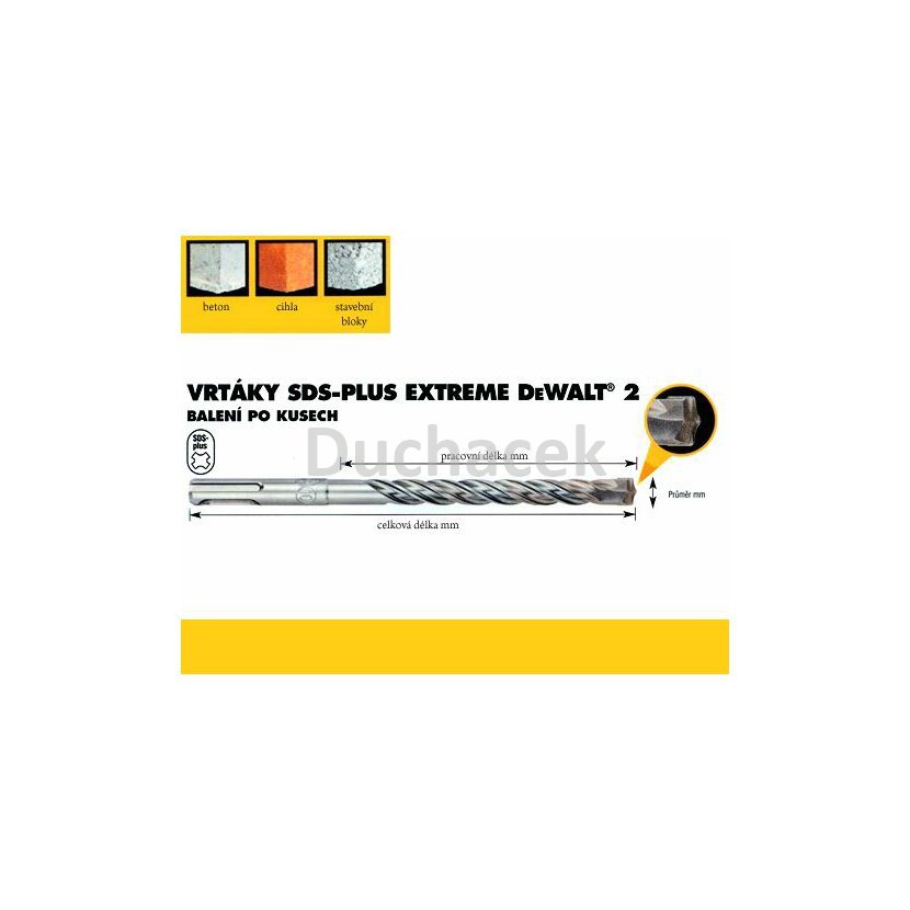 Parametry produktu Vrták SDS-Plus 16,0x750/800mm 2-břité, DeWalt
