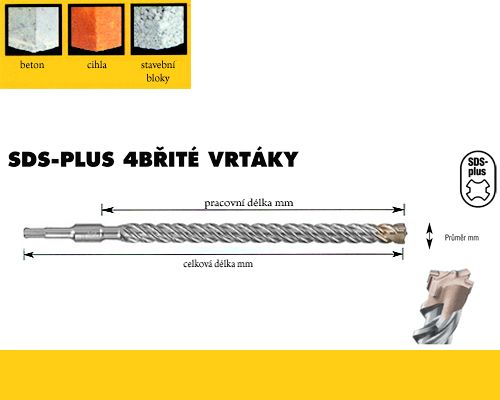 Parametry produktu Vrták SDS-Plus 18,0x400/450mm 4-břité, DT9683, DeWalt